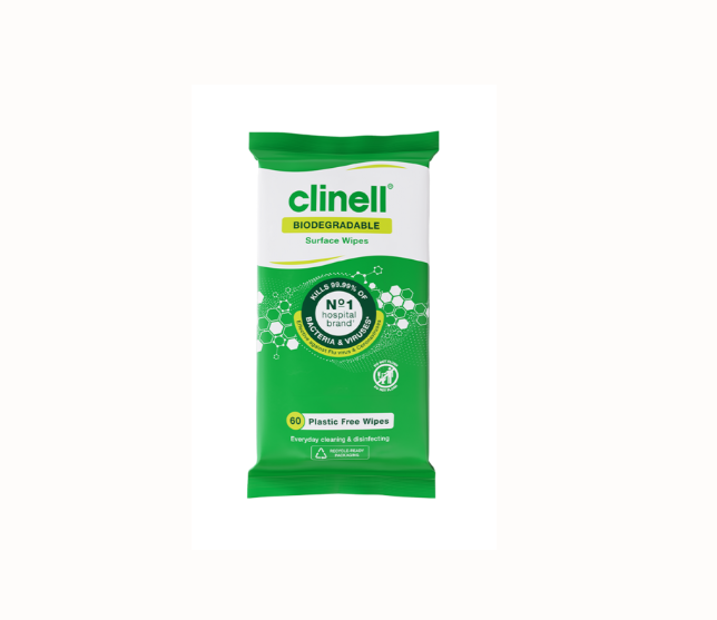 Clinell Biodegradable Surface Wipes are plastic-free wipes designed for cleaning & disinfecting surfaces and high-touch points, whether at home, in your workplace or on the go.